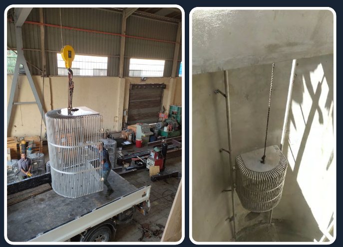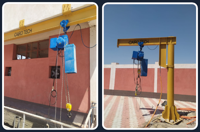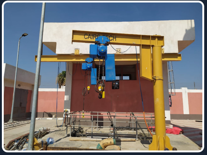 Bani Swif Governorate Owner: NOPWASD Main Contractor: Concord for Engineering Monorail crane 2 ton for pumps & jib crane 1 ton for basket screen